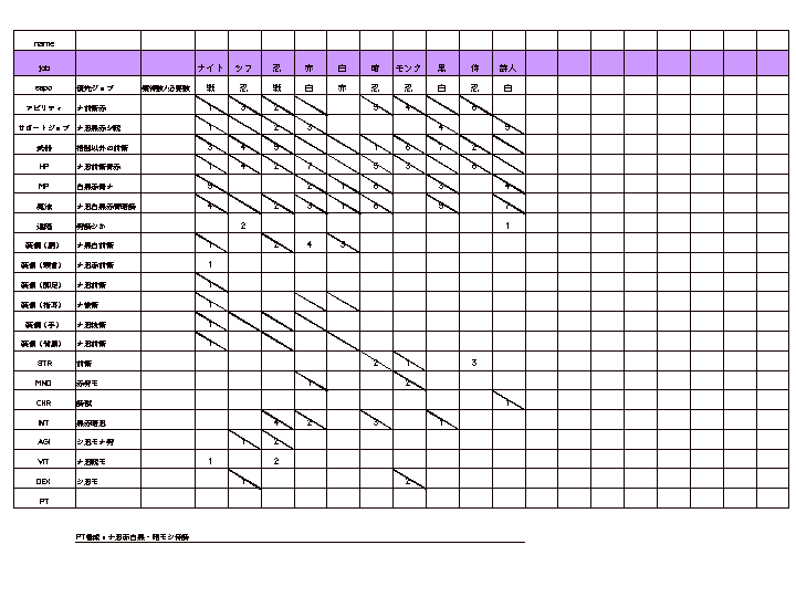 ジョブは ナ忍赤白黒 詩モシ侍暗 10人です。