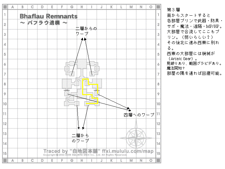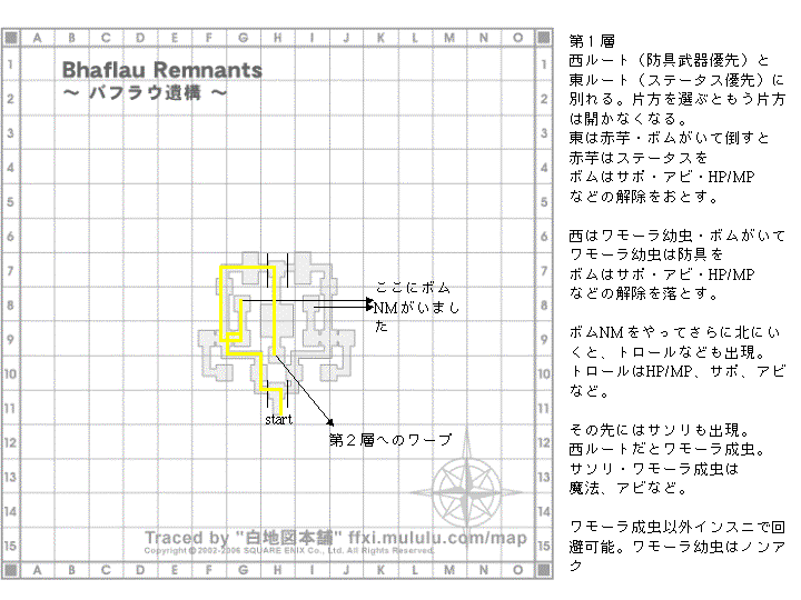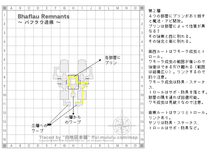 二層は北西に進み、中央の4つの部屋のフランを倒したあと、